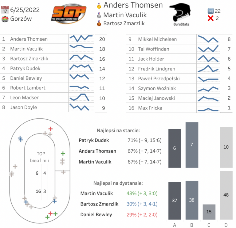 Nikt nie przypuszczał przed startem zawodów SGP iż zwycięzca zostanie Anders Thomsen. Jednak rzeczywistość pokazała, że Duńczyk okazał się najlepszym wśród najlepszych! Zawodnik lokalnej Stali w kluczowym momencie przypuścił atak na triumf!
